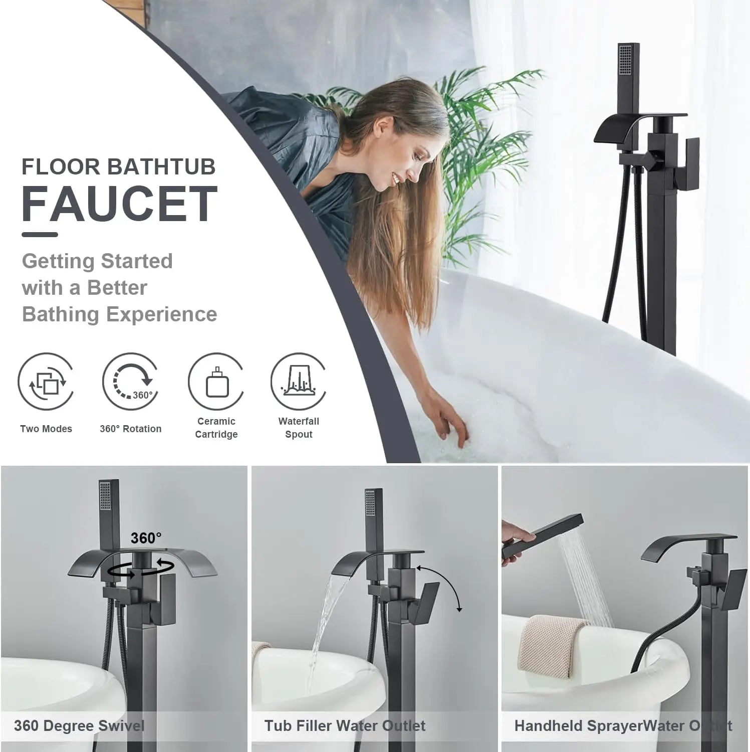 Effortlessly elegant and durable, our Floor Tub Filler Faucet Brass Bathroom Tub is the perfect addition to any modern bathroom. Crafted from high-quality brass, it exudes a timeless and luxurious aesthetic. With its sleek design and easy installation, it promises to elevate your bathing experience.