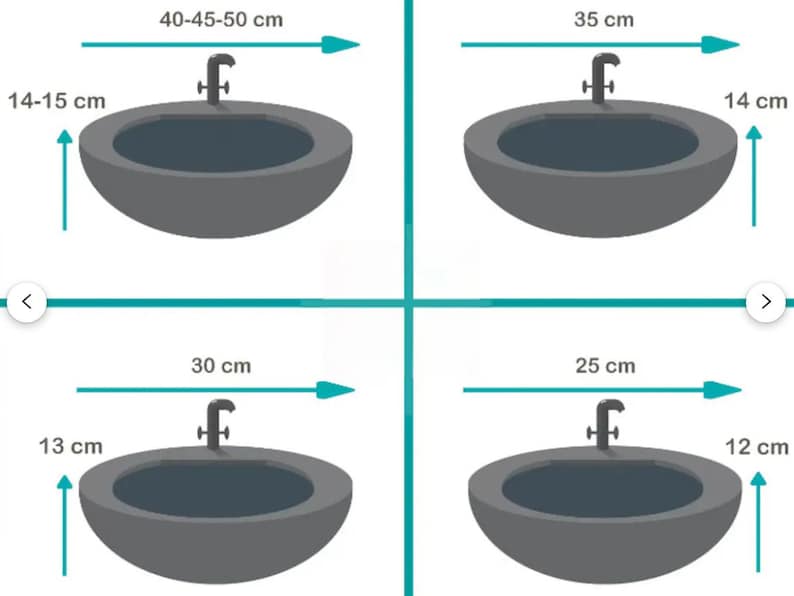 🌟 The height of the basin varies between 13 cm and 16 cm, depending on the size.